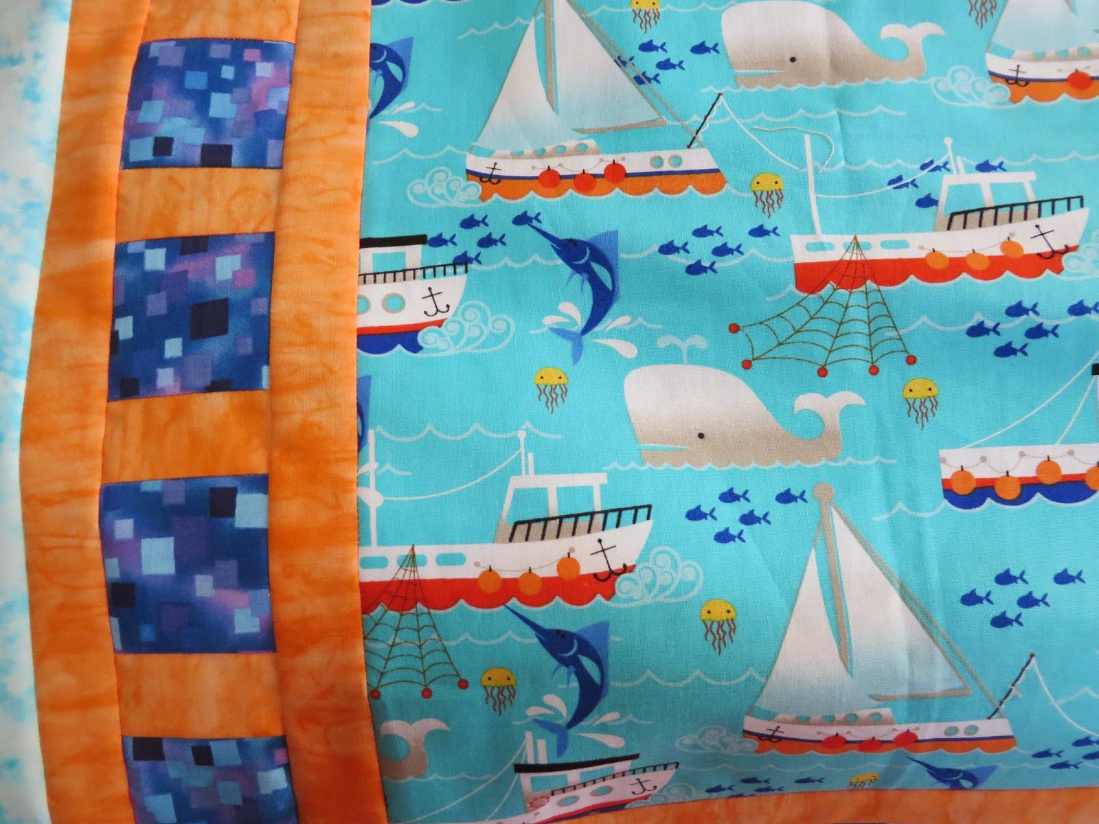 Here is a close up of the center fabric - so adorable. Love those jellyfish! The center panel measures 17x20 - you can get 4 panels out of a yard of fabric - I will use the other 2 panels sometime next year.